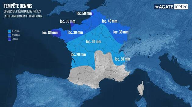 dépression Dennis sera à l’origine de fortes pluies sur nos régions, entre