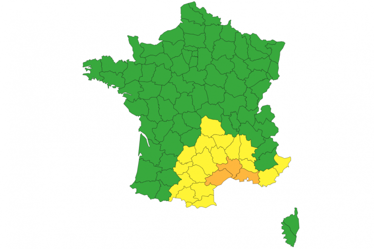 Trois départements, les Bouches-du-Rhône, le Gard et l'Hérault, ont été classés en vigilance orange
