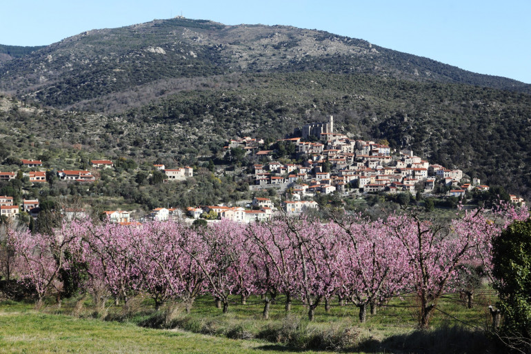 Un champ de pêchers en fleurs, à Eus, dans les Pyrénées-Orientales, le 26 février 2020.