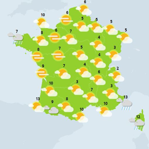 Les prévisions de températures de Météo France pour ce mercredi 13 novembre