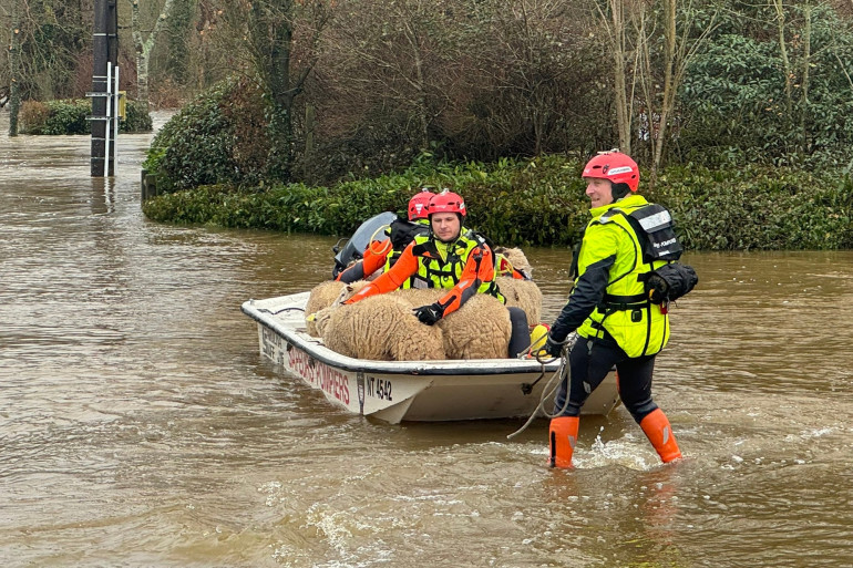 Saute-mouton dans le Morbihan. Ce vendredi 23 janvier, les sapeurs-pompiers sont intervenus pour évacuer les animaux d'une ferme située près de Malestroit. De fortes crues sont en cours dans la région bretonne après le passage de la tempête Ingrid, où des rafales de vents allant jusqu'à 136km/h ont été enregistrées.