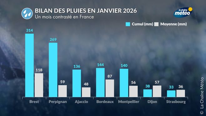 Il a plu deux jours sur trois en Bretagne où il est tombé deux fois la normale mensuelle, d'après le bilan climatique de janvier 2026 de Météo France. Brest a notamment cumulé 319,2 mm de pluie sur le mois de janvier, un record depuis 2016.