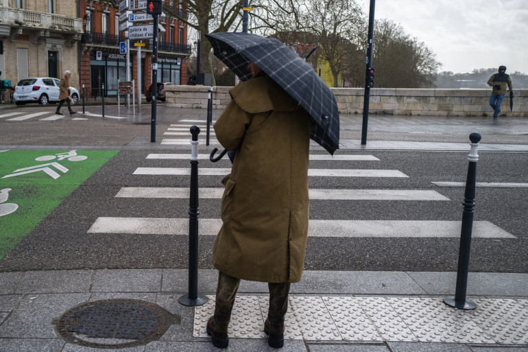 Un homme avec un parapluie à Toulouse (Haute-Garonne), ce 12 février 2026.