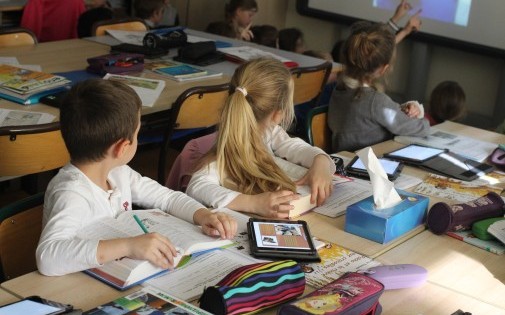 Dans l’école primaire du Berceau, à Élancourt (Yvelines), les outils numériques ont pris place à côté des cahiers. Il y a dix ans maintenant, le maire Jean-Michel Fourgous a fait de sa ville "un laboratoire de l’école numérique". Après avoir équipé ses écoles avec des ordinateurs, il a généralisé l’usage des tableaux numériques interactifs (TNI). Depuis la rentrée, des iPad mini ont été livrés progressivement aux élèves du CP au CM2 des groupes scolaires de la commune.