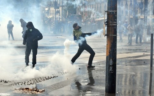 Vers 18H00, les concerts se poursuivaient sur la place de la Petite Hollande, lieu d'arrivée de la manifestation qui a réuni plusieurs dizaines milliers de personnes, 20.000 selon la préfecture. Mais des scènes de guérilla urbaines se produisaient un peu plus loin opposant des casseurs qui ont dépavé les voies de tram pour faire provision de projectiles, à des forces de l'ordre qui ont répondu à renfort de gomme cogne, grenades lacrymogènes ou encore lances à eau.