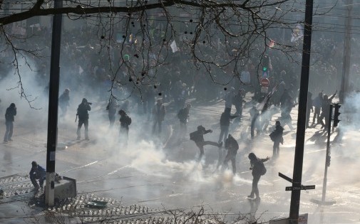 à l'affrontement entre un millier d'opposants radicaux et les forces de
