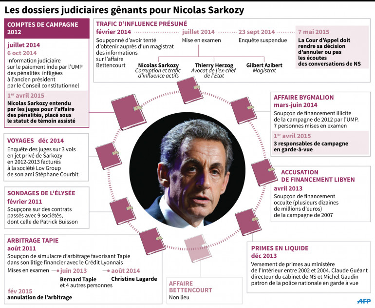 Nicolas Sarkozy est plus que jamais en délicatesse avec la justice. Après que la cour d'appelle de Paris a confirmé la validité des écoutes de l'ancien président de la République, la justice a mis en examen l'actuel président des Républicains dans l'affaire Bygmalion. Une mise en examen qui fait intervient après de nombreuses autres décisions judiciaires visant certains de ses proches.