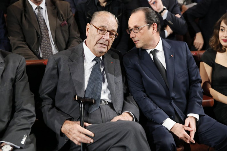 Jacques Chirac et François Hollande, le 21 novembre 2014 à Paris.