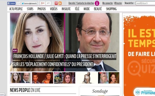 Le site internet du magazine closer annonce la relation supposée entre François Hollande et Julie Gayet (capture écran).