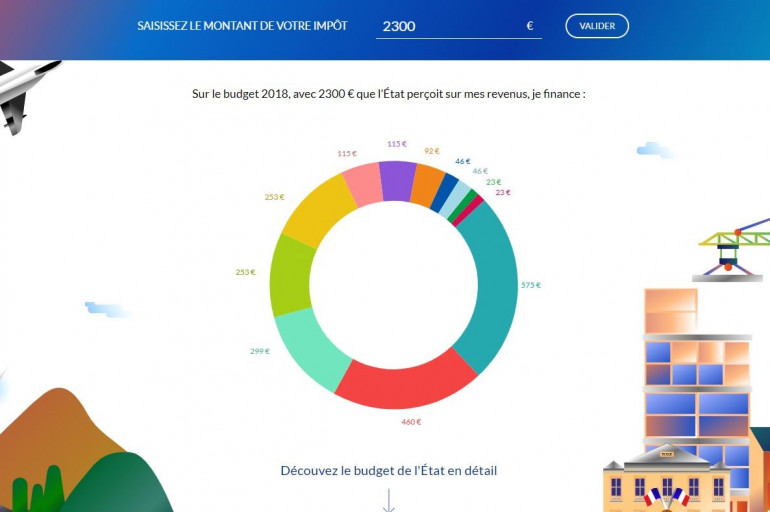 Vous faire aimer payer des impôts. Ou au moins y voir plus clair sur leur utilité. C'est le pari que fait le gouvernement, en lançant un nouvel outil jeudi 26 avril. Le ministre des Comptes publics Gérald Darmanin veut faire de la pédagogie, en expliquant aux contribuables les postes de dépenses de l'État.