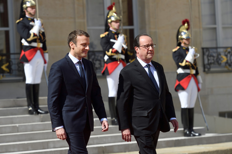Emmanuel Macron et François Hollande, le 14 mai 2017 à l'Élysée