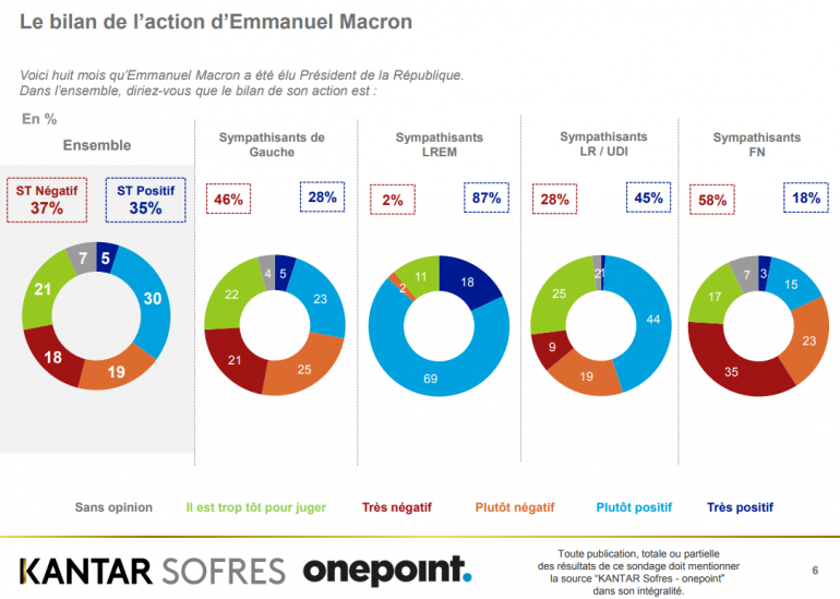 35% des Français estiment que le bilan de la politique Macron à 8 mois est positif, quand 37% le jugent négatif