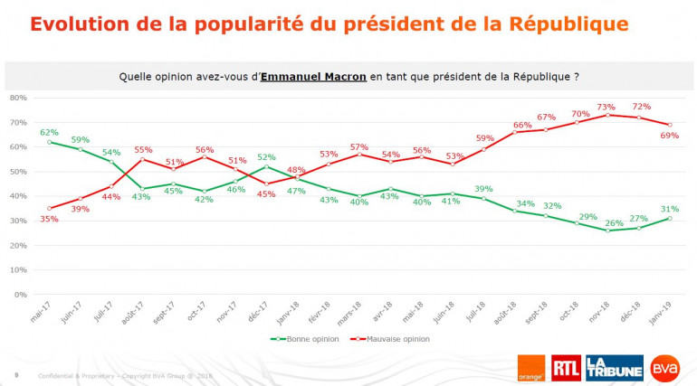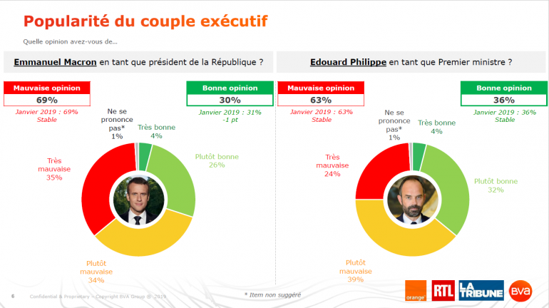 Mais en parallèle, la proportion de Français qui disent attendre les résultats de sa politique pour se faire une opinion, fait un bond de 13% par rapport au mois dernier : elle atteint 45% des personnes interrogées. Le chef de l'État est parvenu à desserrer l'étau, c'est un moment de répit, et le signe qu'il a fait le bon choix en lançant le grand débat, en se montrant plus à l'écoute des Français.