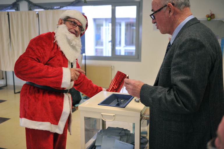 14h30 : Un électeur de la région Centre-Val-de-Loire est venu voter déguisé en père Noël.