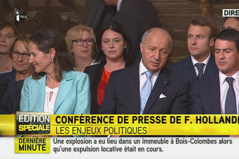 Ségolène Royal, Laurent Fabius et Manuel Valls à la conférence de presse de François Hollande le 18 septembre 2014.