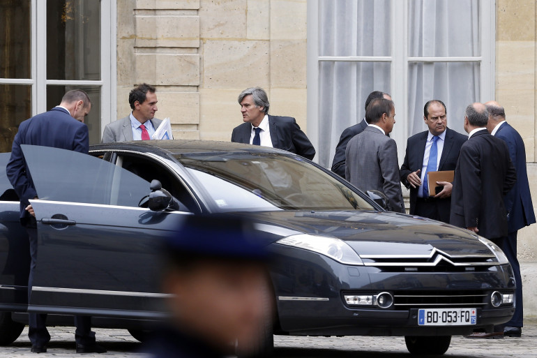 Stéphane Le Foll, Jean-Christophe Cambadélis, Bruno Le Roux, Jean-Marie Le Guen, Didier Guillaume et Vincent Feltesse quittent Matignon le mardi 26 août 2014