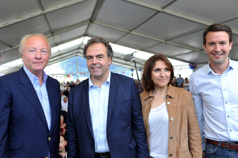 Fête de la violette : (de gauche à droite) Brice Hortefeux, Luc Chatel, Nora Berra et Guillaume Peltier