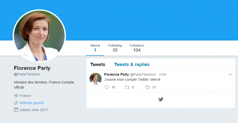 Pendant que ces messages étaient postés, Florence Parly se trouvait à l'Élysée pour son premier Conseil des ministres. Il a finalement fallu que le ministère des Armées lance un avertissement sur Twitter : "Le compte de Florence Parly est un fake, le contenu des tweets postés ne correspond pas à la parole de la ministre des Armées". Le gouvernement a également prévenu les internautes : "Attention, le compte Twitter @ParlyFlorence n'est pas le compte officiel de la ministre des armées".