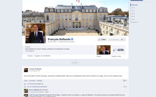 Ce compte est celui qu'il utilisait durant sa campagne présidentielle. Il avait changé son profil après son élection, le 6 mai 2012. Le prêtre Georges Vandenbeusch est arrivé à Paris mercredi à l'aube du premier jour de 2014 à l'aéroport de Villacoublay (Yvelines) où il a été accueilli par le président de la République.