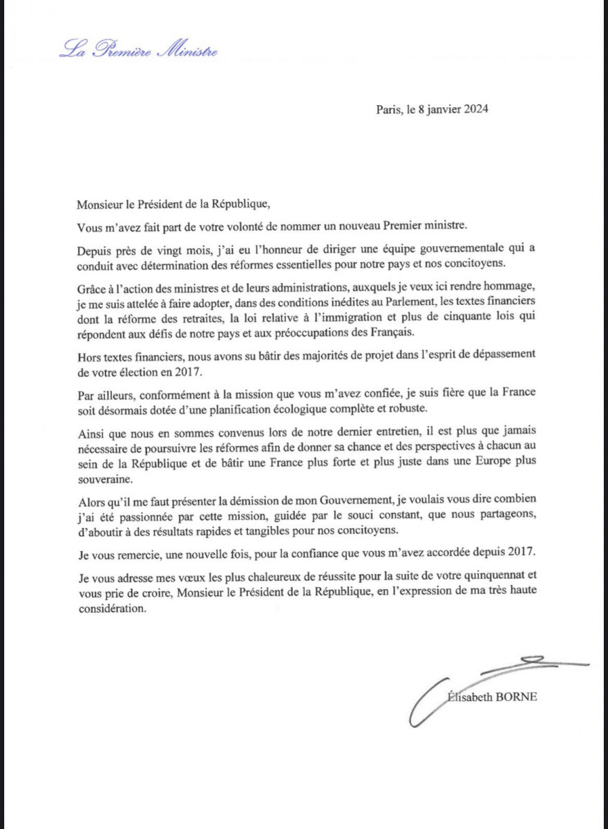 La nomination du nouveau Premier ministre aura lieu mardi matin, au lendemain de la démission d'Elisabeth Borne, a-t-on appris lundi soir auprès de l'entourage d'Emmanuel Macron. Le ministre de l'Education nationale Gabriel Attal est favori pour être nommé à la tête du gouvernement, selon des sources proches de l'exécutif.