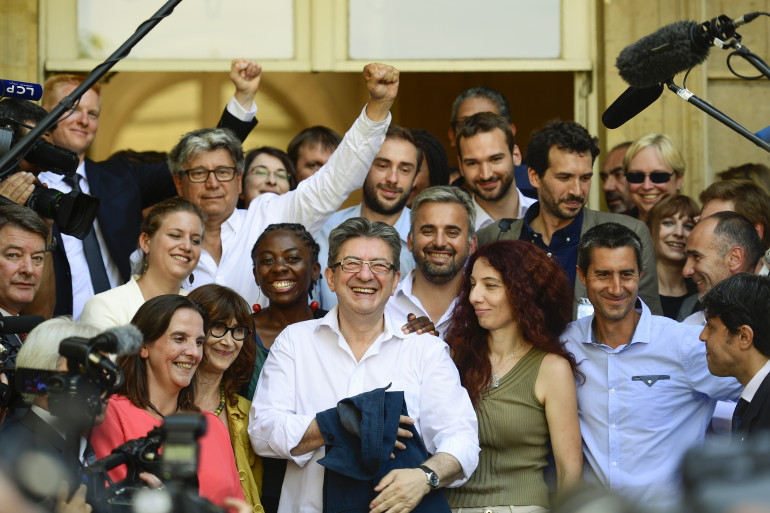 Jean-Luc Mélenchon entouré des députés de La France Insoumise, à Paris le 20 juin 2017