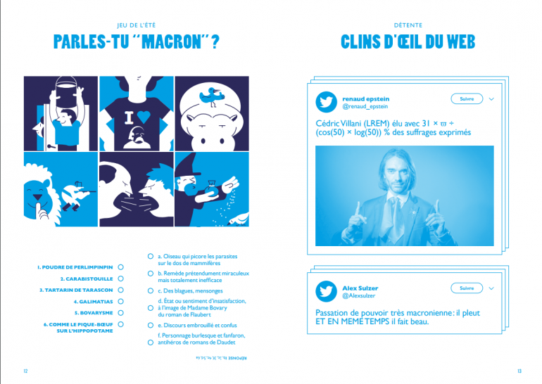 Dans la lignée de la communication "jeune et innovante" voulue par Emmanuel Macron, les militants n'ont pas caché leur volonté d'un projet "un peu décalé", comme le dit l'illustrateur du cahier Nicolas Herenstein à Franceinfo.
