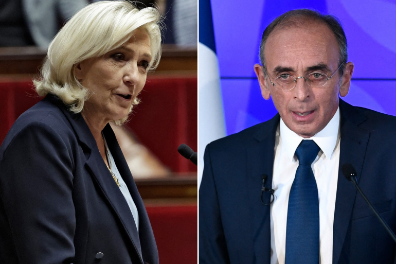 Avec le RN, "nous sommes proches pour arrêter l'immigration, et encore, moi, je considère que l'islam n'est pas compatible avec la République, madame Le Pen si. Je considère qu'il y a un 'grand remplacement', Madame Le Pen dit 'non'. Je suis pour la 'remigration' des délinquants, des chômeurs de longue durée. Madame Le Pen dit que ce n'est pas républicain", a-t-il énuméré. "Vous voyez, on est très différents", a-t-il conclu.