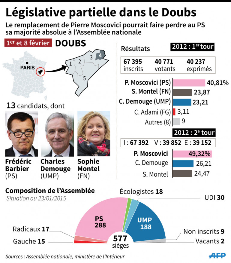 L'élection législative partielle dans la 4ème circonscription du Doubs visant à remplacer Pierre Moscovici, devenu commissaire européen aux affaires économiques et européennes, opposera donc les candidats Front national et Parti socialiste.
