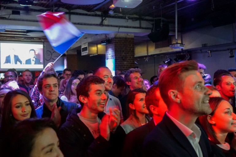 Des militants du groupe "Les Jeunes avec Macron", le 3 mai 2017