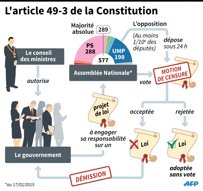 Le gouvernement avait déjà eu recours à cette arme en février, lors de la première lecture du texte du ministre de l’Économie, face à l'opposition attendue de 30 ou 40 députés PS hostiles notamment à l'extension de l'ouverture des commerces le dimanche. Mais cette fois, le gouvernement va engager sa responsabilité dès le début, en s'épargnant des débats dans l'hémicycle.
