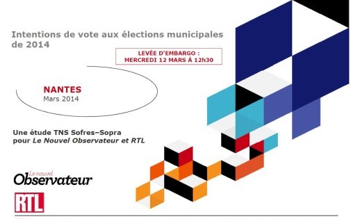Ce sondage a été réalisé par téléphone du 6 au 8 mars 2014 sur un échantillon de 603 personnes inscrites sur les listes électorales nantaises choisies selon la méthode des quotas.