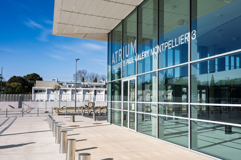Des étudiants circulent sur le campus Paul-Valéry a Montpellier, le 5 mars 2025