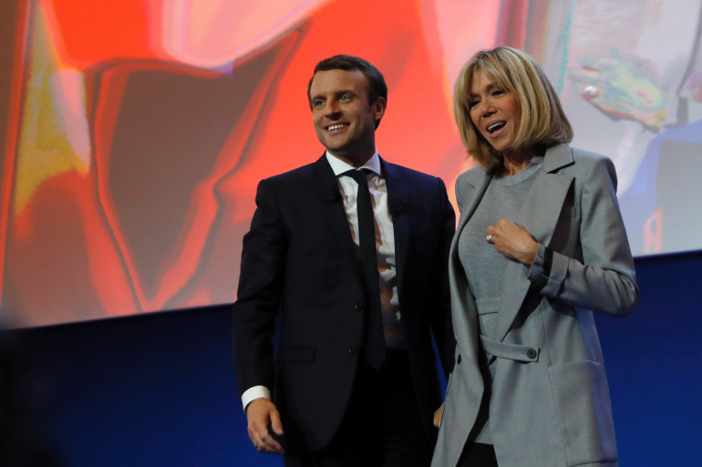 Emmanuel Macron et son épouse Brigitte le 24 avril 2017