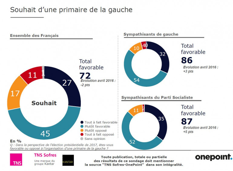 Autre élément pouvant démontrer cette volonté de ne pas revoir le président se représenter : la part importante des Français qui souhaitent une primaire à gauche. 72% des Français, 86% des sympathisants de gauche et 87% des sympathisants du PS se disent favorables à une primaire à gauche. Néanmoins, les proches du président de la République serait tenté de changer les règles du jeu pour éviter une défaite de François Hollande et peut-être une guerre civile au sein de la gauche. Le premier secrétaire du PS Jean-Christophe Cambadélis n'a pas exclu de convoquer un congrès extraordinaire pour modifier les statuts du PS et dispenser François Hollande de participer à une primaire. Une hypothèse qui traduit des signes de "fébrilité" et d'"agressivité" au sein du PS pour Pierre Laurent, le secrétaire national du PCF.