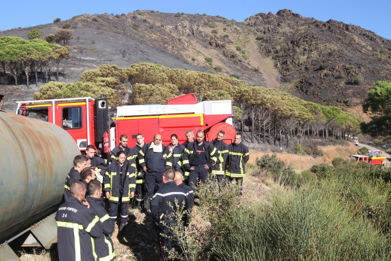 Les pompiers mobilisés lors d'un incendie près de Cerbère le 18 septembre.