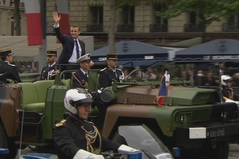 Emmanuel Macron en chef de guerre dès les premiers instants de son quinquennat. François Hollande avait remonté les Champs-Élysée en bravant une pluie intense à bord de sa Citroën DS 5 décapotable. François Mitterrand avait préféré une Citroën SM présidentielle en 1981, Jacques Chirac une Citroën Maserati en 1995... Valérie Giscard d'Estaing lui avait préféré marcher pour remonter les Champs-Élysées, fleurir la tombe du Soldat inconnu et ranimer la flamme sous l'Arc de Triomphe.