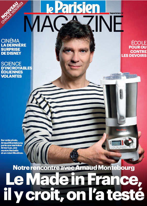 L'exercice du mannequinat n'est pas totalement étranger à Arnaud Montebourg. En 2012, il avait posé en couverture du Parisien Magazine en marinière Armor-Lux, portant au poignet une montre Michel Herbelin et tenant dans ses mains un mixeur Moulinex, produits en France.