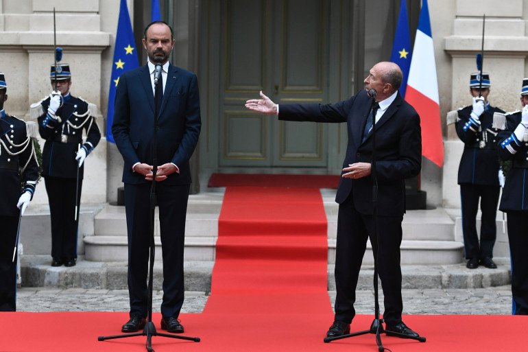 Le désormais ex-ministre de l'Intérieur a évoqué son bilan depuis mai 2017, et s'est félicité de quitter "un ministère apaisé", bien qu'il affirme le faire avec "regrets". "J'ai aimé travailler avec vous", lui a répondu Édouard Philippe avant une poignée de main.