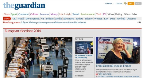 TheGuardian.fr fait sa une sur Marine Le Pen le dimanche 25 mai 2014