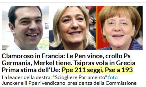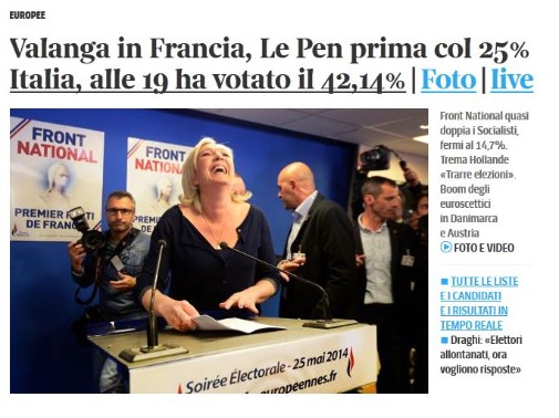 Marine Le Pen à la une du site internet de La Reppublica dimanche 25 mai