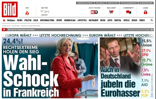 C'est une Marine Le Pen réjouie, en train de voter, que l'on retrouve à la une de Bild qui titre sur "La victoire de l'extrême droite : le choc de l'élection".