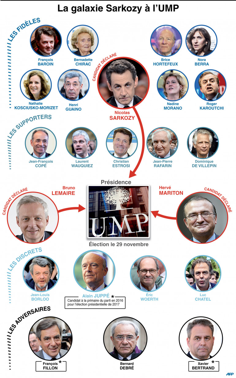Parmi les ténors de l'UMP, un certain nombre ont pris leur temps avant de soutenir Sarkozy. C'est notamment le cas de François Baroin, un temps courtisé par Xavier Bertrand, qui voyait un lui un candidat idéal pour la présidence du parti. Mais le maire de Troyes préférerait viser la présidence de l'Association des maires de France (AMF), et a récemment apporté son soutien à l'ex-locataire de l'Élysée.