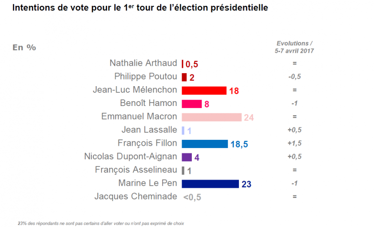 Les intentions de vote pour le 1er tour de l'élection présidentielle