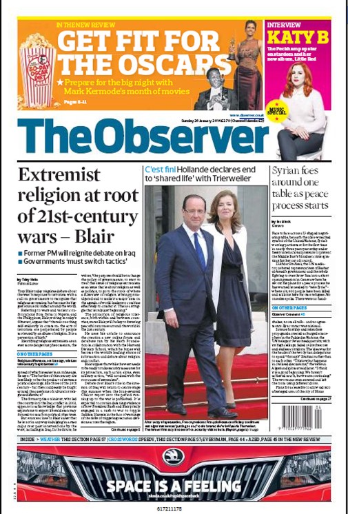 "The Observer" place la séparation de Hollande et Trierweiler en une dimanche 26 janvier 2014