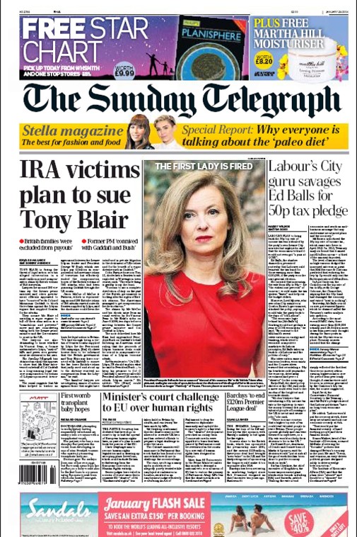 La une du "Sunday Telegraph" datée du 26 janvier 2014