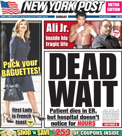 La couverture du New-York Post daté du dimanche 26 janvier 2014