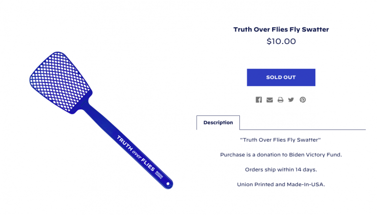Il était également possible d'acheter sur le site internet du candidat démocrate, des tapettes "Truth over Flies" (la vérité plus forte que les mouches), pour 10 dollars l'unité. Celles-ci sont désormais en rupture en stock.