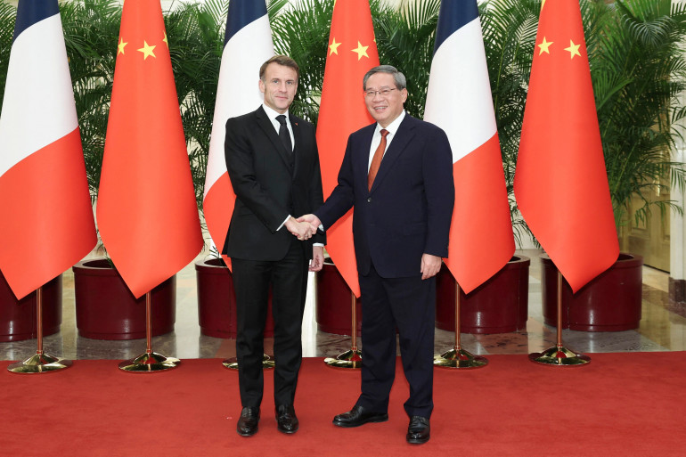 Sur le plan diplomatique, cette rencontre entre les deux chefs d'États est cruciale. Accompagné de son épouse Peng Liyuan, le président chinois a reçu Emmanuel Macron et son épouse Brigitte dans le cadre monumental du Palais du peuple, décor des congrès du Parti communiste chinois. Ils ont écouté les hymnes nationaux et passé en revue la garde, avant d'être salués par un groupe d'enfants auquel le chef de l'Etat français a adressé un baiser de la main.