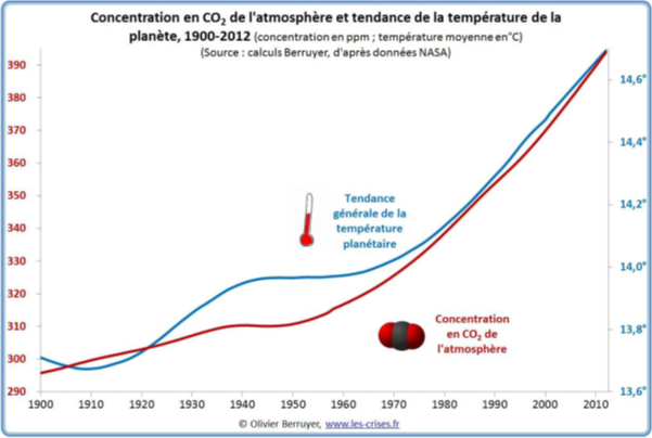 Hausse de la température en corrélation avec la hausse du niveau de CO2 dans l'air