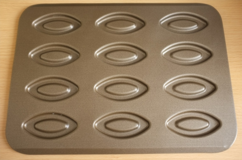 Incorporer délicatement les blancs en neige au mélange précédent, en tournant toujours dans le même sens pour ne pas casser les blancs. La pâte est alors souple et aérée. Graisser la plaque à barquette avec de la margarine, verser dans chaque cavité un peu de pâte, attention, il ne faut pas que la pâte dépasse des barquettes.